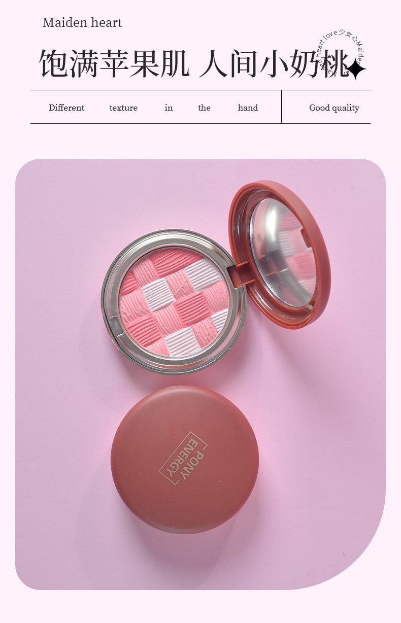 主打宣传:传奇腮红星夜限定,绝美蜜桃金微醺氛围感,碎金细闪,自带高光,愉悦上颊,迷醉微醺。功效:泪沟膨胀色,显嫩不怕手重,饱满苹果肌,人间小奶桃。专研显色微粒不显毛孔,依融在肌肤的自然红晕,自带高光,双颊适日慕亲吻的玫瑰。
